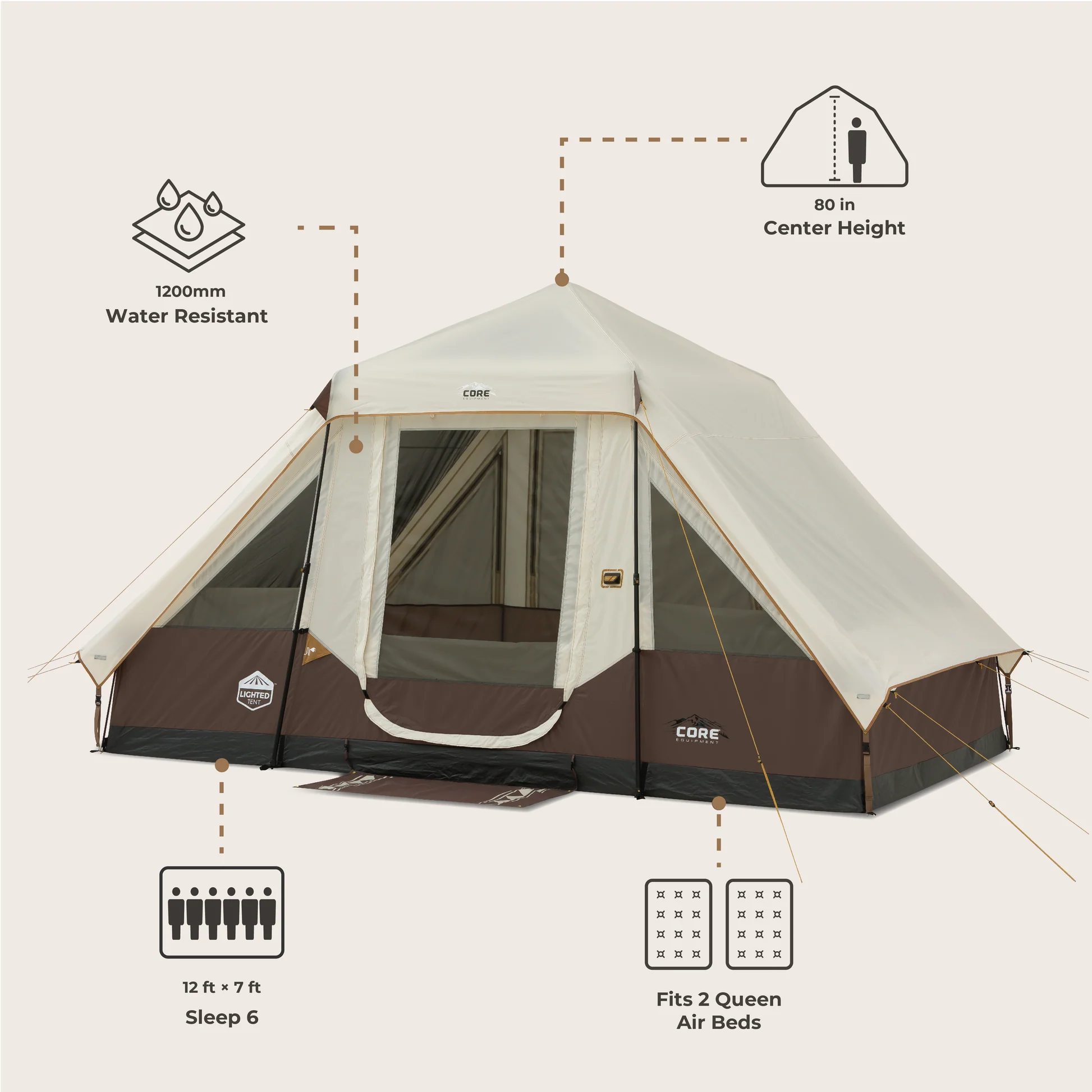 چادر کر اتومات – 6 نفره کمپینگ Core 6 Person Lighted Instant Pyramid Tent