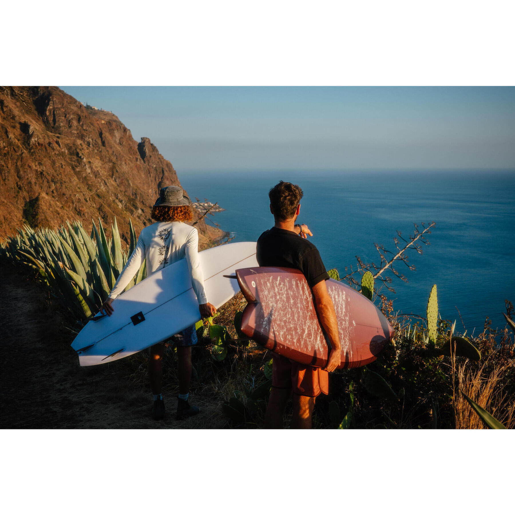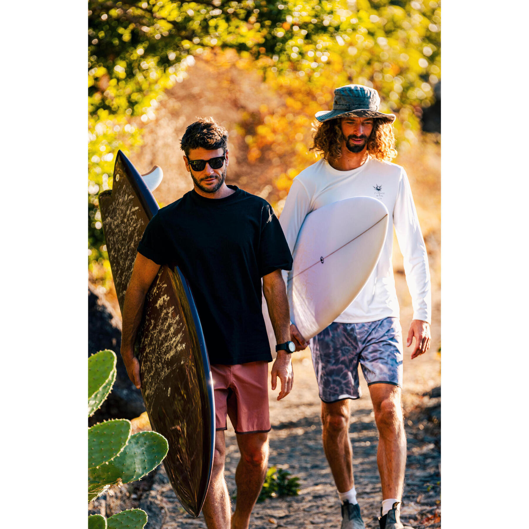 آیا میدانستید؟ ۱۰ تا ۱۵٪ از اشعه UV از سطح آب منعکس میشود و ۴۰ تا ۹۵٪ از آن تا عمق ۲۵ سانتیمتری آب نفوذ میکند. برای محافظت کامل در برابر آفتاب در تمرینات طولانی، توصیه میکنیم از پوششهای محافظ UV در کنار شورت موجسواری استفاده کنید.
