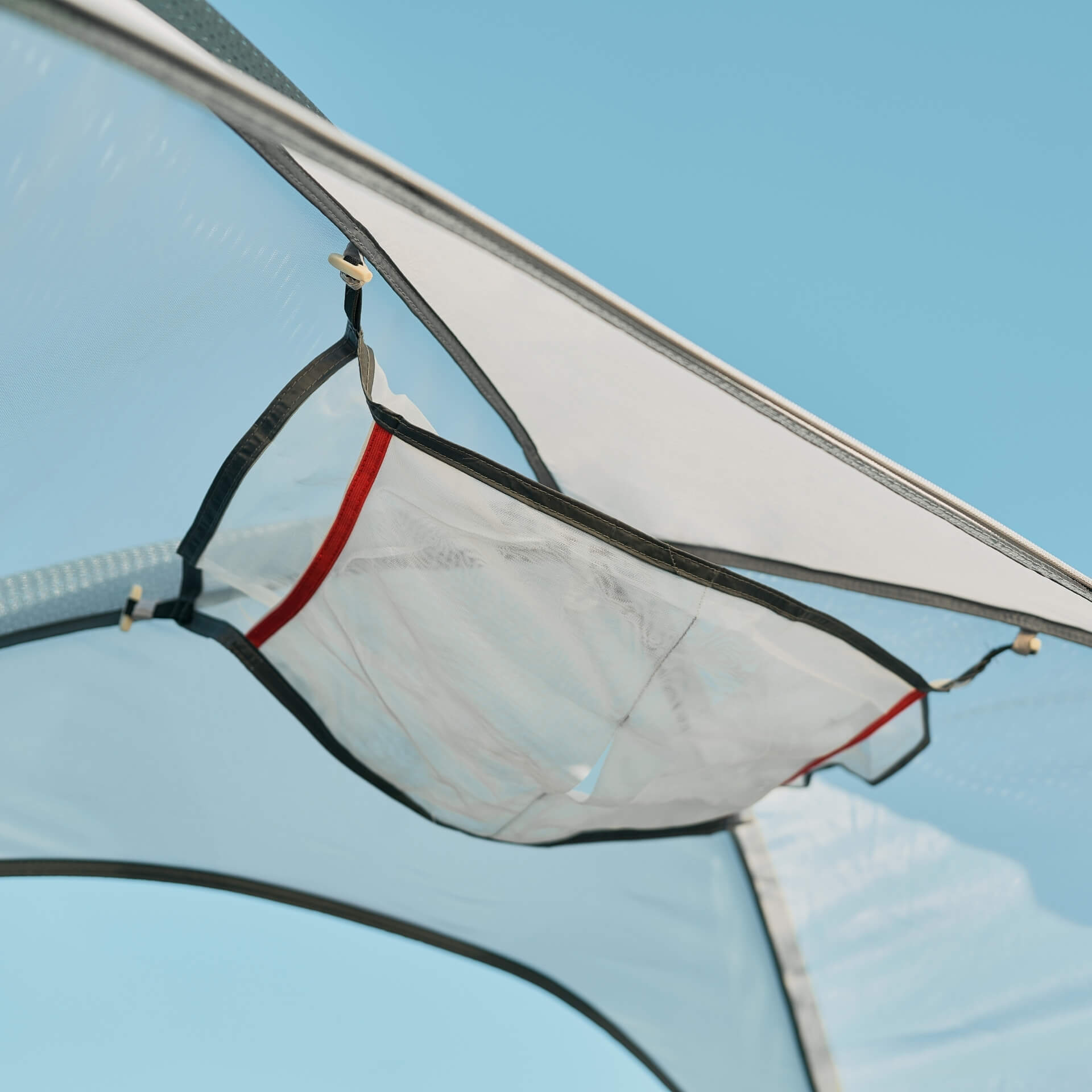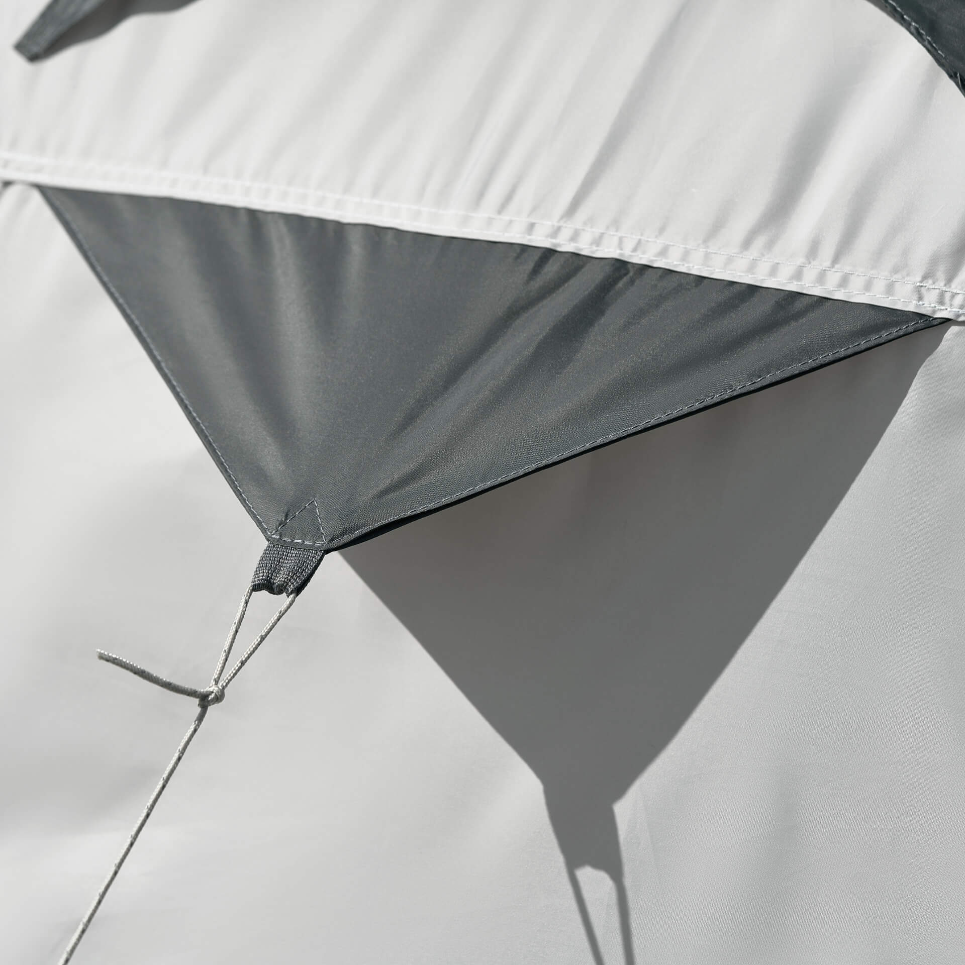 پوش کامل از پلی استر با پوشش PU (2000 میلی متر) با آپارات صنعتی درزها بهره میبرد ، در حالی که کف چادر از قدرت بیشتری برخوردار است، ریت 4000 میلی متر، بنابراین از باران در امان خواهید بود.