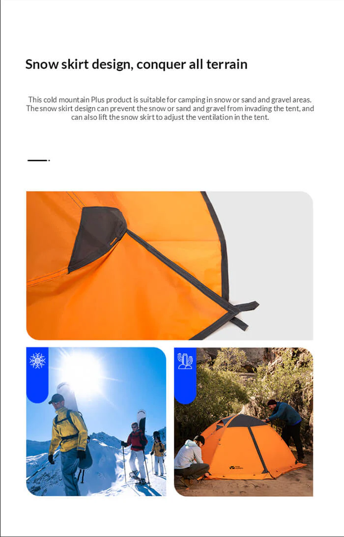 چادر موبی گاردن – 3 نفره کوهستان – گتر دار چهار فصل Mobi Garden Cold Mountain Plus Tent از مزارع برفی زمستانی گرفته تا دشت های بادگیر ، Cold Mountain Plus ثبات درجه یک کوهنوردی آلپ را با وزن سبک ترکیب می کند، بنابراین می توانید با چادر اکسپدیشن ضد بمب به هر نقطه مکانی صعود کنید.