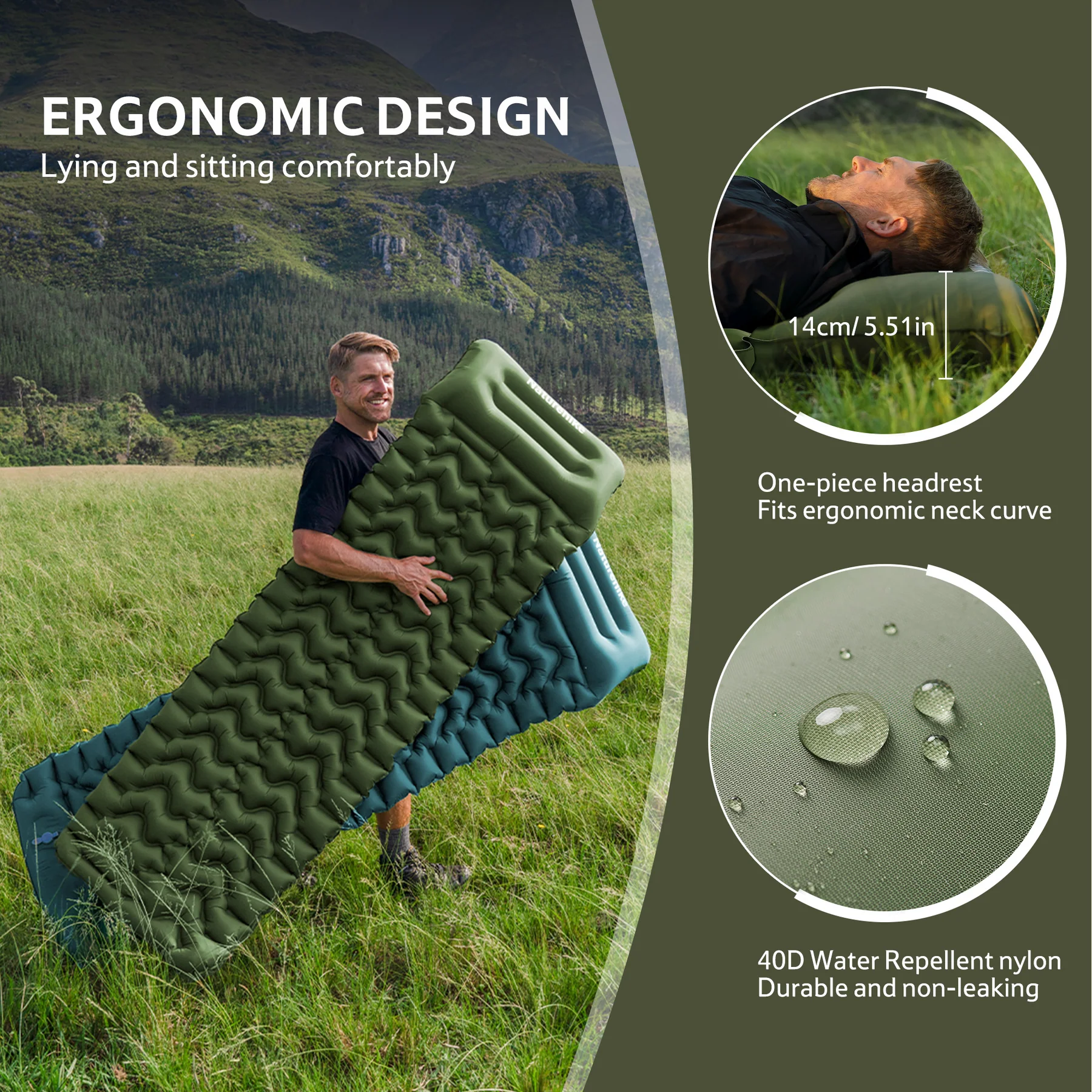 تشک از نایلون 40d با پوشش TPU ساخته شده است. این مواد در برابر رطوبت ، قلاب و خاک غیرقابل نفوذ است. چگالی بالای نایلون به محصول اجازه می دهد تا بارهای حداکثر 125 کیلوگرم را تحمل کند. هنگام باد شده، تشک 200 در 60 سانتی متر با ضخامت 6.5 سانتی متر ایعد دارد. هنگام تاشو ، فضای کمتری را به خود اختصاص می دهد – فقط 14 در 32 سانتی متر در کاور قرار میگیرد.