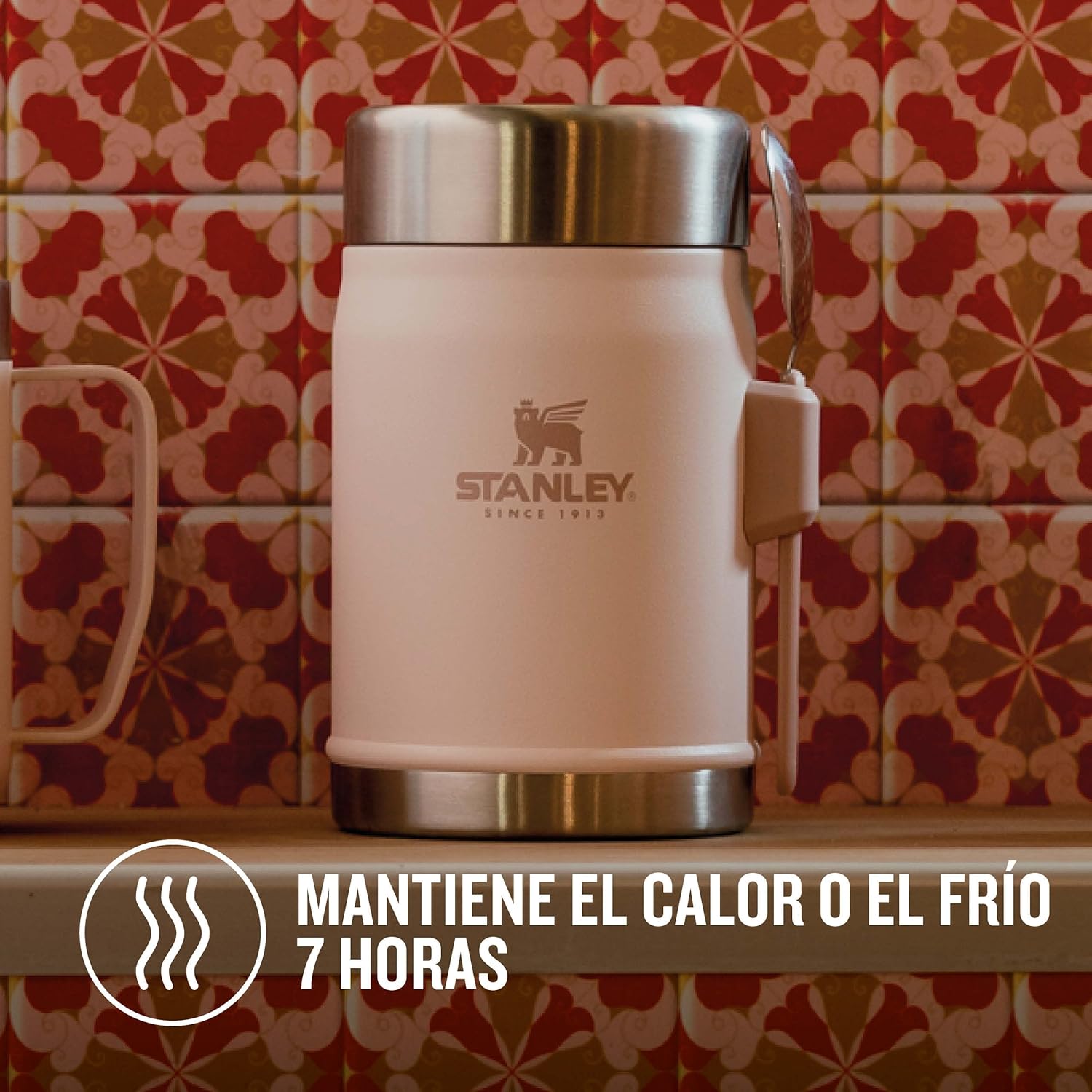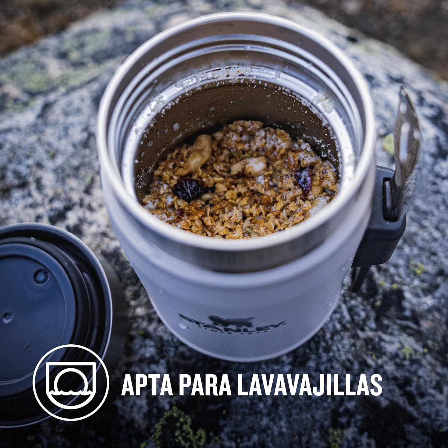 فلاسک غذای کلاسیک استنلی با ظرفیت ۰٫۴ لیتر (۱۴ اونس) برای وعدههای گرم یا سرد روزانه مناسب است. طراحی جمعوجور و کاربردی آن باعث میشود تا محتویات تا ساعتها با دمای مناسب باقی بمانند. عایق خلأ دو جداره از نفوذ گرما یا سرما جلوگیری میکند و غذای شما را تازه نگه میدارد. اسپورک داخلی به شما امکان میدهد بدون نیاز به ابزار اضافی، غذا بخورید و دهانه بزرگ پر کردن، هم زدن و شستوشوی محتویات را آسان میکند.